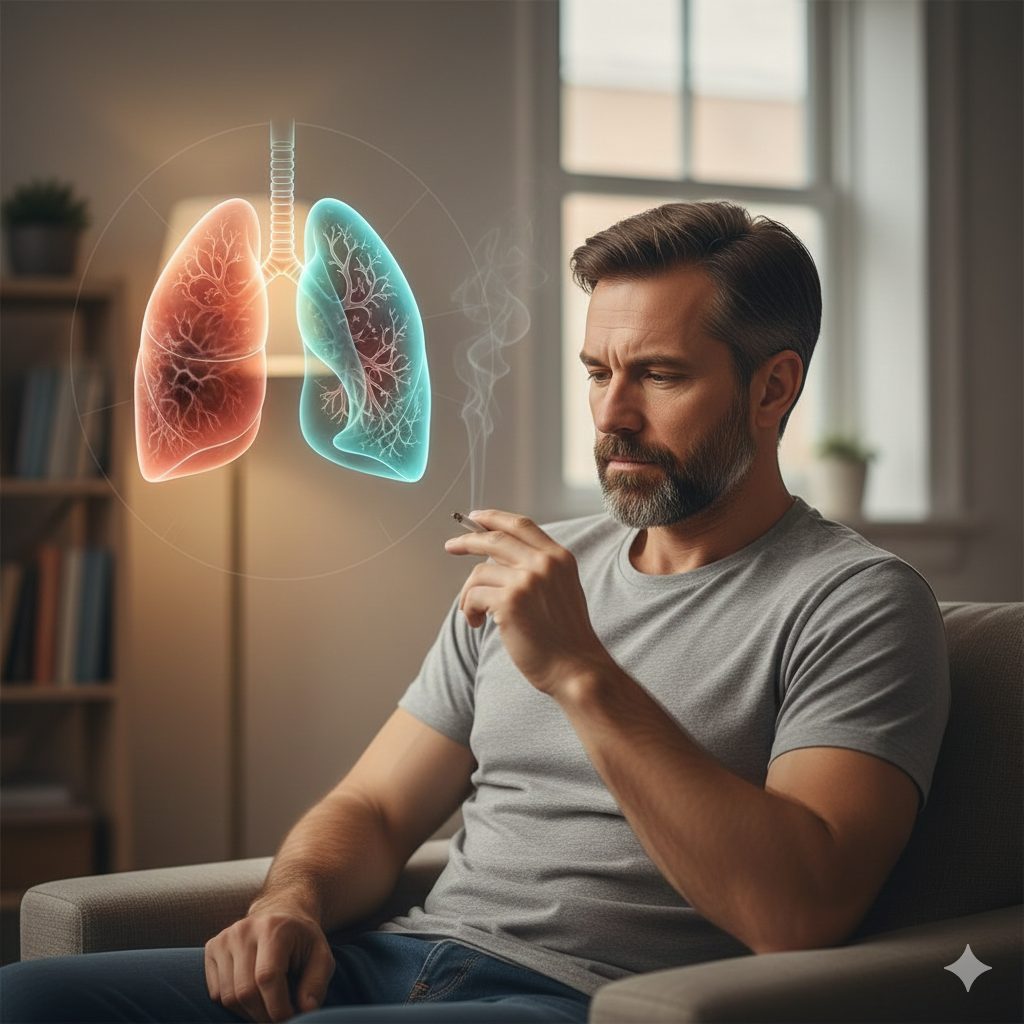 Smoking affects the lungs gradually and silently. Even when symptoms are mild, internal lung damage may already be present. Common smoking-related problems include chronic cough, breathlessness, frequent chest infections, reduced stamina, and worsening of asthma or allergies.